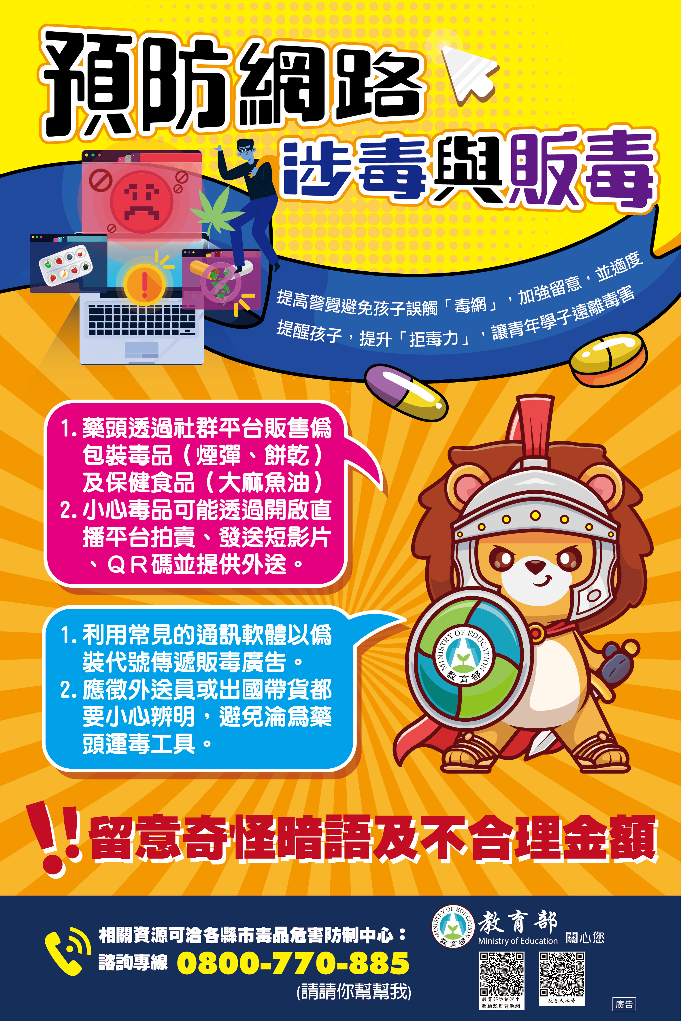 教育局特別製作防制笑氣使用文宣及警察局手繪反毒影片,以建立大家對笑氣危害的認知,一同守護彼此的身心健康