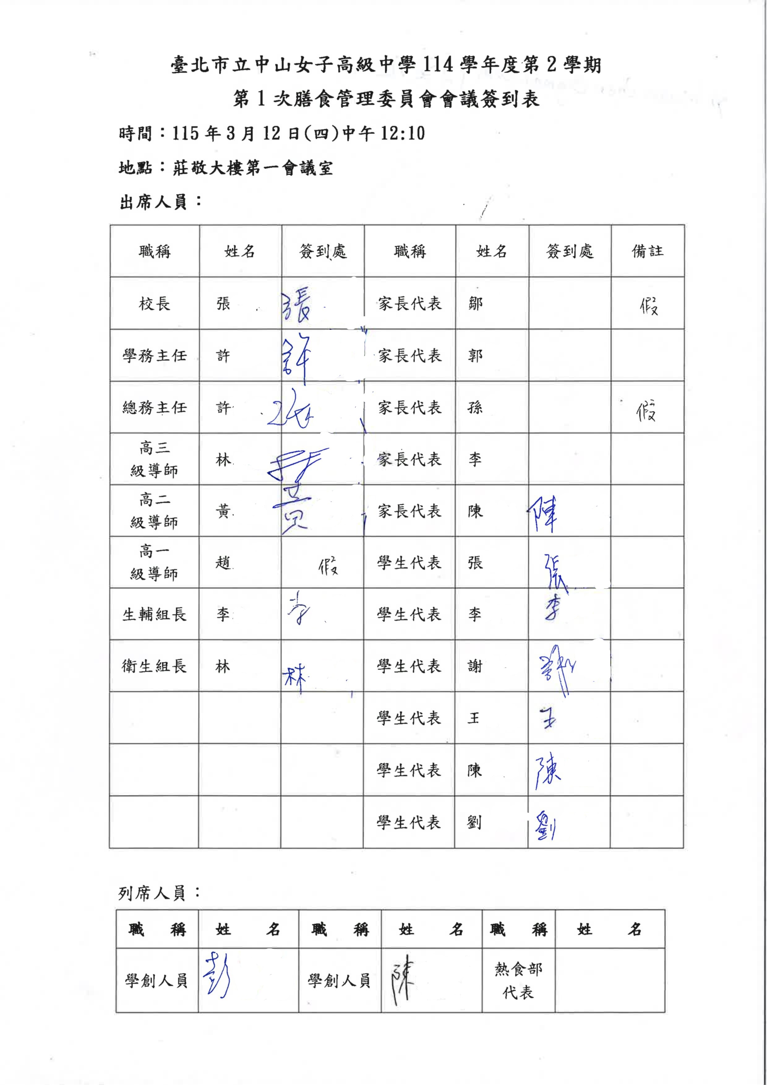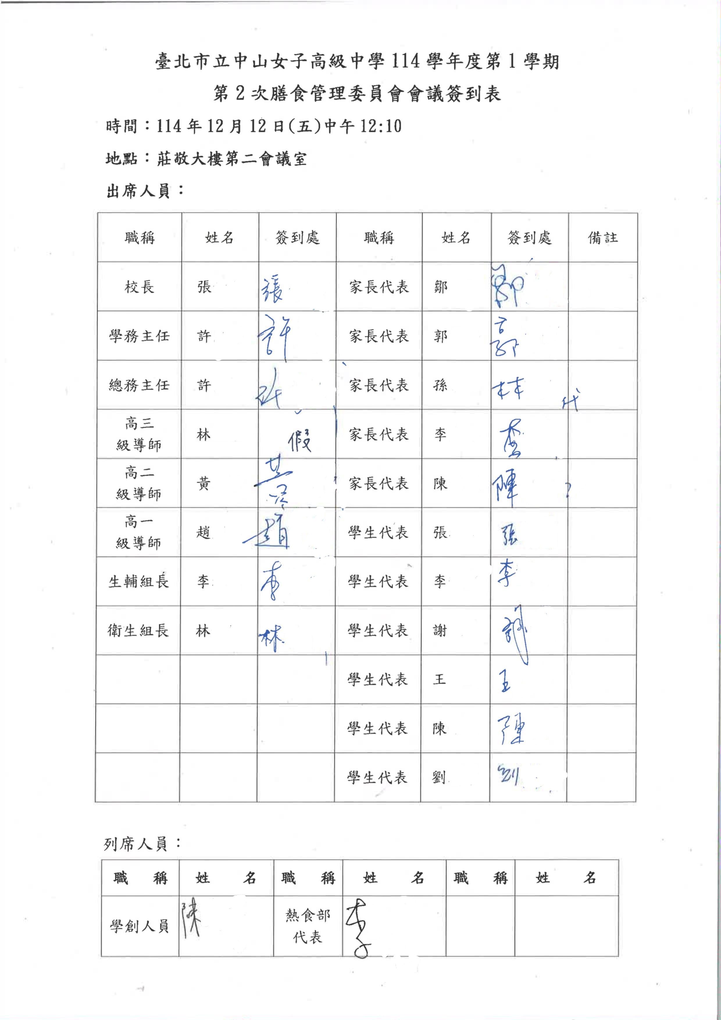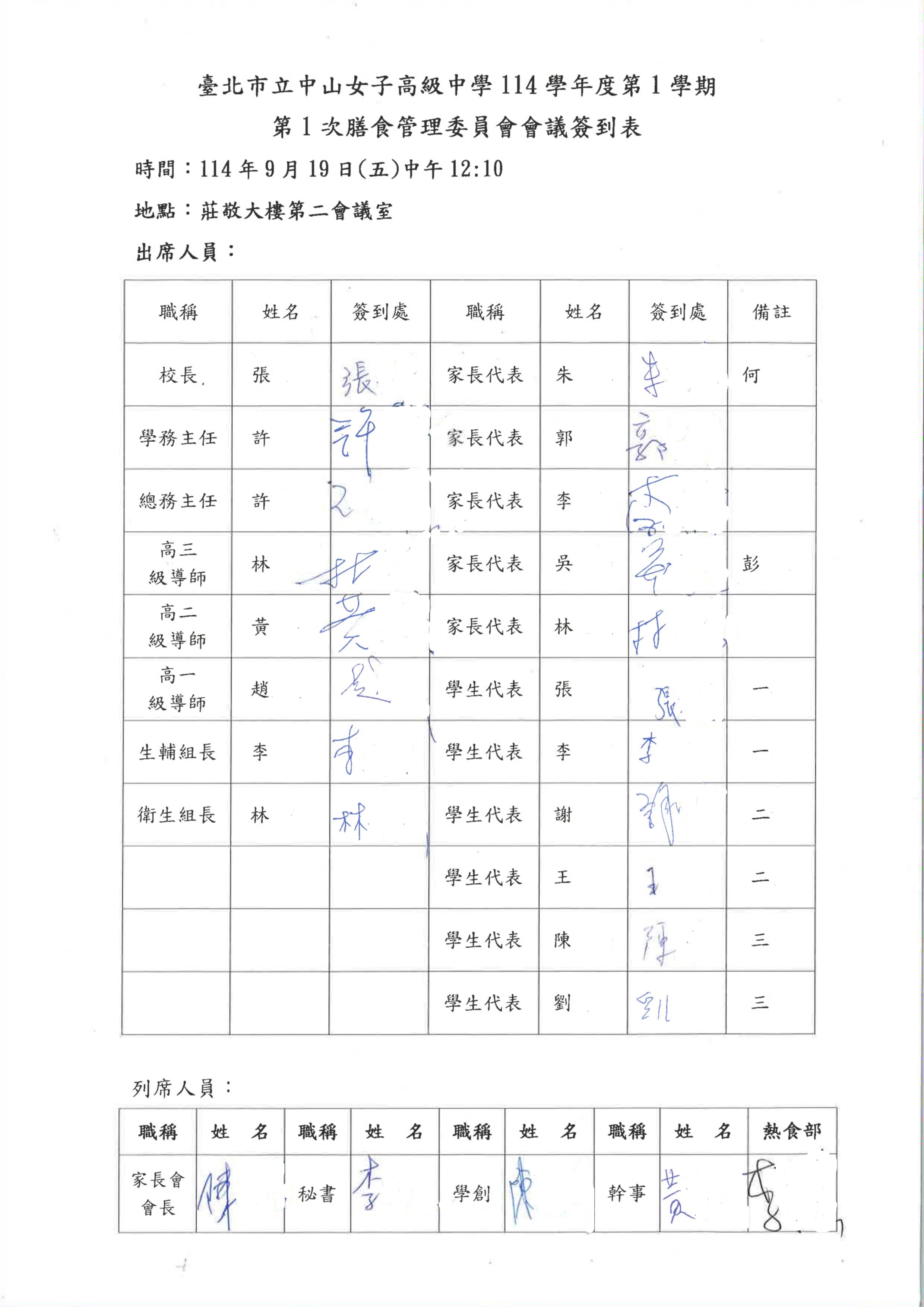 膳食管理委員會 中山女高膳食管理委員會組織及運作規定(11312修) 中山女高膳食管理委員會組織及運作規定(11312修) 檔案名稱檔案大小檔案格式下載中山女高學膳食管理委員會組織及運作規定(1131211).pdf87.51 KB新視窗開啟檔案 中山女高學膳食管理委員會組織及運作規定(1131211).pdf 會議紀錄 »114學年度第2學期第1次膳食管理委員會會議紀錄(114-2-1膳委會紀錄 114-2-1膳委會紀錄 檔案名稱檔案大小檔案格式下載114-2第1次膳食管理委員會紀錄1.pdf357.23 KB新視窗開啟檔案 114-2第1次膳食管理委員會紀錄1.pdf、簽到表 簽到表 檔案名稱檔案大小檔案格式下載114-2第一次膳委會簽到表(公告).jpg538.80 KB新視窗開啟檔案 114-2第一次膳委會簽到表(公告).jpg) »114學年度第1學期第2次膳食管理委員會會議紀錄(114-1-2膳委會紀錄 114-1-2膳委會紀錄 檔案名稱檔案大小檔案格式下載114-1第2次膳食管理委員會紀錄.pdf653.01 KB新視窗開啟檔案 114-1第2次膳食管理委員會紀錄.pdf、114-1熱食部滿意度調查結果(百分比)1029 114-1熱食部滿意度調查結果(百分比)1029 檔案名稱檔案大小檔案格式下載114-1熱食部滿意度調查結果(百分比)1029.pdf284.87 KB新視窗開啟檔案 114-1熱食部滿意度調查結果(百分比)1029.pdf、外食要點修正對照表(114會議通過) 外食要點修正對照表(114會議通過) 檔案名稱檔案大小檔案格式下載外食要點修正對照表(114會議通過).pdf235.04 KB新視窗開啟檔案 外食要點修正對照表(114會議通過).pdf、開放外食訂購實施要點(114會議通過) 開放外食訂購實施要點(114會議通過) 檔案名稱檔案大小檔案格式下載開放外食訂購實施要點(114會議通過).pdf154.77 KB新視窗開啟檔案 開放外食訂購實施要點(114會議通過).pdf、簽到表 簽到表 檔案名稱檔案大小檔案格式下載114-1-2膳委會簽到表(公告).jpg513.79 KB新視窗開啟檔案 114-1-2膳委會簽到表(公告).jpg) »114學年度第1學期第1次膳食管理委員會會議紀錄(114-1-1膳委會紀錄 114-1-1膳委會紀錄 檔案名稱檔案大小檔案格式下載114-1第1次膳食管理委員會紀錄.pdf1.59 MB新視窗開啟檔案 114-1第1次膳食管理委員會紀錄.pdf、簽到表 簽到表 檔案名稱檔案大小檔案格式下載114-1-1膳委會簽到表(公告).jpg526.45 KB新視窗開啟檔案 114-1-1膳委會簽到表(公告).jpg) »113學年度第2學期第2次膳食管理委員會會議紀錄(113-2第2次膳食管理委員會紀錄 113-2第2次膳食管理委員會紀錄 檔案名稱檔案大小檔案格式下載113-2第2次膳食管理委員會紀錄.pdf393.32 KB新視窗開啟檔案 113-2第2次膳食管理委員會紀錄.pdf、113-2-2膳委會簡報 113-2-2膳委會簡報 檔案名稱檔案大小檔案格式下載113-2-2膳委會簡報 .pdf13.93 MB新視窗開啟檔案 113-2-2膳委會簡報 .pdf、附件一-113-2熱食部滿意度調查結果(百分比)0513修 附件一-113-2熱食部滿意度調查結果(百分比)0513修 檔案名稱檔案大小檔案格式下載附件一-113-2熱食部滿意度調查結果(百分比)0513修.pdf384.70 KB新視窗開啟檔案 附件一-113-2熱食部滿意度調查結果(百分比)0513修.pdf、附件二-113-2-2修正作業說明書 附件二-113-2-2修正作業說明書 檔案名稱檔案大小檔案格式下載附件二-113-2-2修正作業說明書.pdf268.02 KB新視窗開啟檔案 附件二-113-2-2修正作業說明書.pdf、113-2-2膳委會簽到表(公告) 113-2-2膳委會簽到表(公告) 檔案名稱檔案大小檔案格式下載113-2-2膳委會簽到表(公告).jpg512.05 KB新視窗開啟檔案 113-2-2膳委會簽到表(公告).jpg) »113學年度第2學期第1次膳食管理委員會會議紀錄(會議紀錄 會議紀錄 檔案名稱檔案大小檔案格式下載113-2-1膳委會會議記錄(全).pdf1.04 MB新視窗開啟檔案 113-2-1膳委會會議記錄(全).pdf、簽到表 簽到表 檔案名稱檔案大小檔案格式下載簽到表(公告).jpg543.91 KB新視窗開啟檔案 簽到表(公告).jpg) » 113學年度第1學期第2次膳食管理委員會會議紀錄(會議紀錄 會議紀錄 檔案名稱檔案大小檔案格式下載113-1第2次膳食管理委員會紀錄.pdf773.80 KB新視窗開啟檔案 113-1第2次膳食管理委員會紀錄.pdf、113-1熱食部滿意度調查結果(百分比)1030 113-1熱食部滿意度調查結果(百分比)1030 檔案名稱檔案大小檔案格式下載113-1熱食部滿意度調查結果(百分比)1030.pdf103.53 KB新視窗開啟檔案 113-1熱食部滿意度調查結果(百分比)1030.pdf、膳委會修正對照表(113-1-2) 膳委會修正對照表(113-1-2) 檔案名稱檔案大小檔案格式下載膳委會修正對照表(113-1-2).pdf162.38 KB新視窗開啟檔案 膳委會修正對照表(113-1-2).pdf、膳委會組織及運作規定(修正後條文) 膳委會組織及運作規定(修正後條文) 檔案名稱檔案大小檔案格式下載中山女高學膳食管理委員會組織及運作規定(1131211).pdf87.51 KB新視窗開啟檔案 中山女高學膳食管理委員會組織及運作規定(1131211).pdf) » 113學年度第1學期第1次膳食管理委員會會議紀錄(113-1第1次膳食管理委員會紀錄 113-1第1次膳食管理委員會紀錄 檔案名稱檔案大小檔案格式下載113-1第1次膳食管理委員會紀錄(完整)2.pdf1.21 MB新視窗開啟檔案 113-1第1次膳食管理委員會紀錄(完整)2.pdf、簽到表 簽到表 檔案名稱檔案大小檔案格式下載113-1-1膳委會簽到表(公告).jpg612.90 KB新視窗開啟檔案 113-1-1膳委會簽到表(公告).jpg) » 112學年度第2學期第2次膳食管理委員會會議紀錄(112-2第2次膳食管理委員會紀錄 112-2第2次膳食管理委員會紀錄 檔案名稱檔案大小檔案格式下載112-2第2次膳食管理委員會紀錄.pdf596.34 KB新視